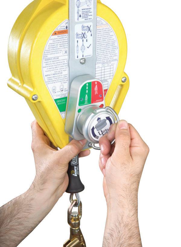 3M DBI SALA Ultra Lok RSQ Self Retracting Lifeline’s (SRL’s) are rugged, highly engineered devices that can be counted on for user safety, efficiency and reliability. An SRL’s lifeline will extend as the user moves away, and retract automatically enabling the user to move about within a recommended working area at normal speeds. Should a fall occur, a speed sensing brake system will activate stopping the fall and reducing the forces imposed on the user to safe levels. The innovative Ultra Lok RSQ model features dual modes; standard fall arrest mode and 2 descent modes; automatic descent for self rescue and remote/assisted descent rescue by pole or hand. This dual mode model lowers the cost of ownership by reducing the need for separate rescue equipment and ensures you always have a rescue plan. The SRL extends and retracts automatically, allowing the user to move efficiently and comfortably at normal speeds around the recommended work area. The Ultra Lok RSQ is light in weight thanks to its glass filled polyurethane housing. For operational longevity, all models use corrosion resistant stainless steel working components. 15 m in length and available with either galvanised steel or stainless steel cable. At the end of the cable is a double action snap hook for attachment to a harnesses fall arrest point. This double action snap hook has a built in swivel and fall arrest indicator. The reserve lifeline system built in to this SRL allows the brake and energy absorption system to function properly even if a fall occurs when the cable is fully extended. For added security, the UltraLok RSQ features an anti ratcheting twin disc brake system, with an audible indication that the device is functioning correctly.