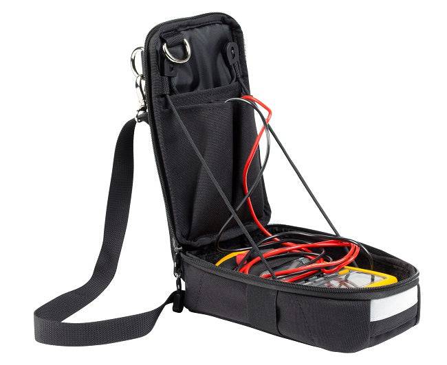 The 3M DBI SALA Inspection Pouch is designed for the safe transport and use of most multi meters, air monitors, and other portable testing devices. A unique, patent pending adjustable opening can be used to create a hands free work station off the hip or chest. Three Tool Pockets inside the pouch are perfect for tools and testing probes. Tools can be tied off to a D ring inside the pouch, or a D ring located on either side of the back of the pouch. The Inspection Pouch has been designed to be worn off the belt, or over the shoulder with an included shoulder strap.