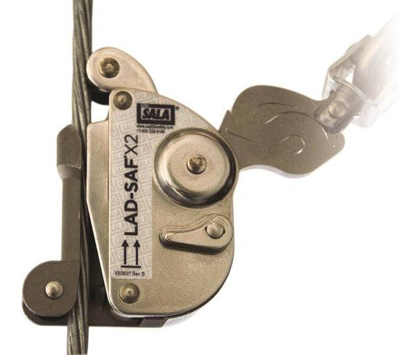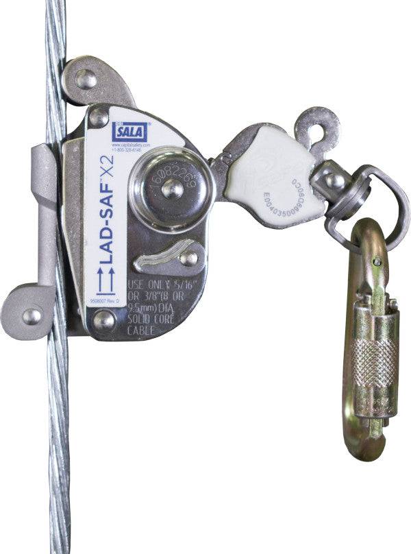 3M DBI-SALA Lad-Saf X2 Detachable Cable Sleeve/Traveler attaches and detaches anywhere on a vertical lifeline and follows as they ascend or descend, to help keep workers secured during a climb. It features a zinc-plated steel carabiner and two-independent locking systems to help ensure optimal security in the event of a fall. 3M DBI-SALA Lad-Saf X2 Detachable Cable Sleeve/Traveler is manufactured from stainless steel which helps to resist corrosion in harsh conditions. Designed for use on galvanised or stainless steel 9.5 mm (3/8 in) and 8 mm (5/16 in) vertical lifeline cables.