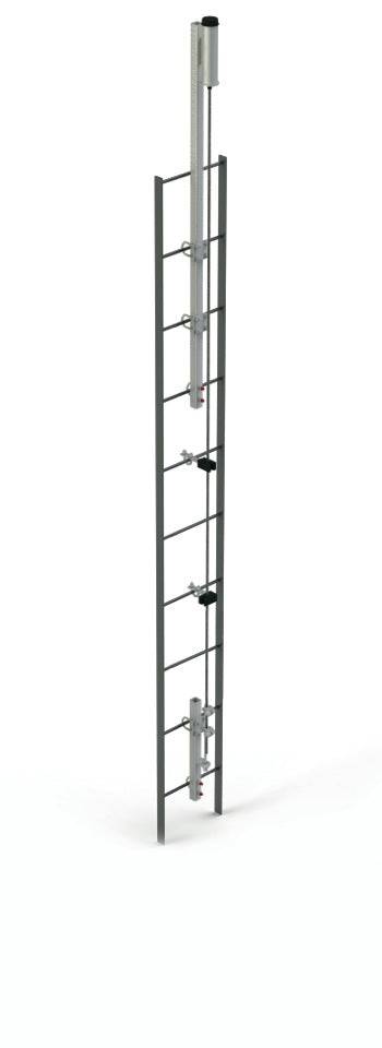 - Dual-independent locking mechanism that allows constant attachment to a harness while simultaneously gliding along the lifeline