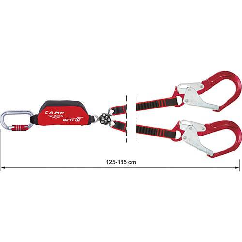 CAMP Safety Edge Tested Elastic Lanyard with 62mm Hooks, RETEXO GYRO REWIND 125cm-185cm Twin Leg, 7250208 – Latest Version UK
