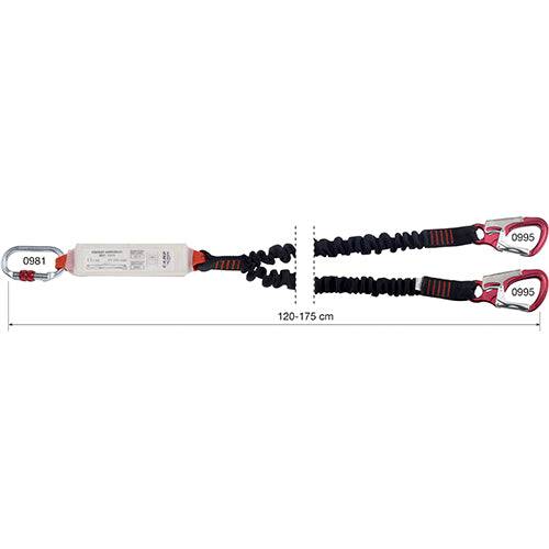 CAMP Safety Elastic Lanyard with 23mm Aluminium Connectors, SHOCK ABSORBER REWIND 120cm-175cm Twin Leg, 7030208 – Latest Version UK