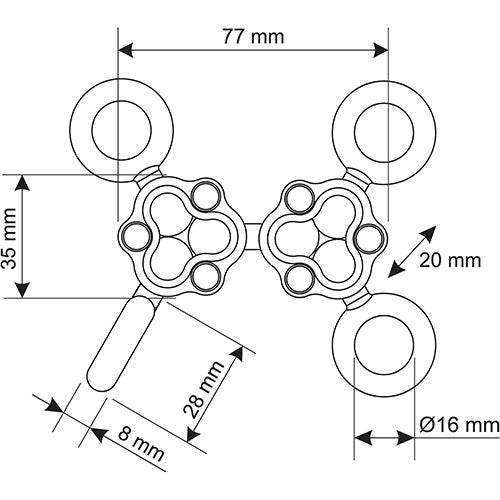 • Working load limit: 3 kN. Minimum breaking strength: 26 kN. Working load limit and minimum breaking strength are doubled when the two main bodies are oriented horizontally.