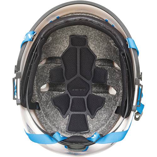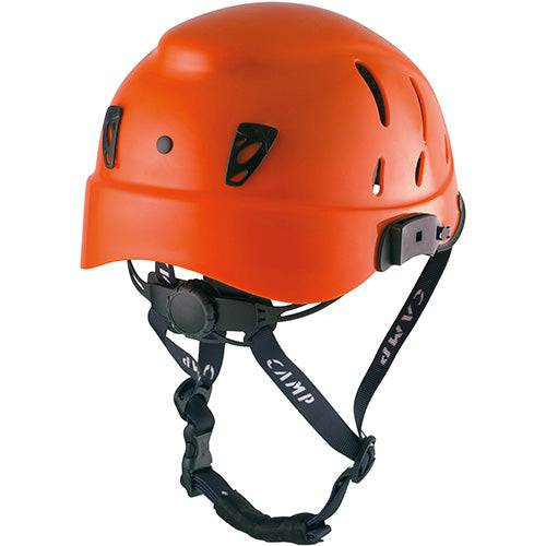 A superlight and comfortable safety helmet developed for technical activities like rope access, tree climbing and rescue. ABS shell with high density EPS foam on the inside. Turn dial size adjustment. Full strength chin strap (> 50 kg) prevents incidental or accidental release. Equipped with attachment points for ear protection, visor and headlamp. One size fits all.