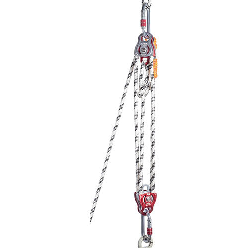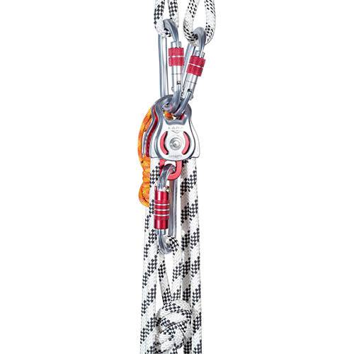 Compact double pulley for block-and-tackle systems. Large connection hole accommodates two carabiners. For ropes up to 13 mm. Prusik minding, the self-locking knot can be installed on both sides and both wheels. Sealed ball bearings for high efficiency and intensive use at high speed.