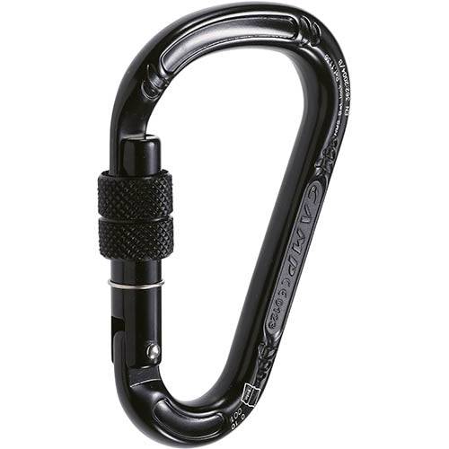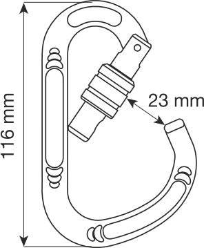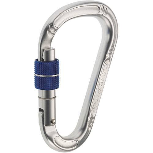 Aluminum alloy carabiner with a wide gate opening specifically designed for use with knots. Keylock closure prevents rope snagging during use. Screw gate locking system. CE marking including individual serial number.