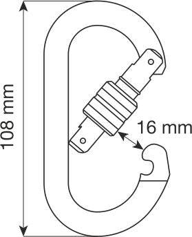 Camp Safety’s basic connector for all activities. High strength carbon steel. Zinc plated carbon steel body and gate. Oval shaped. Anodized aluminium alloy screw. Screwgate. CE marking including individual serial number.