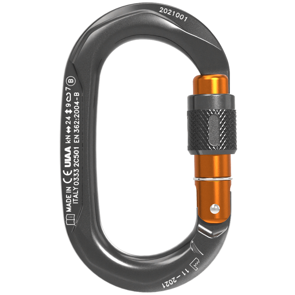Hot-forged light-alloy oval carabiner with reduced dimensions and screw-lock gate. Ideal for rope access work, work at height and rescue operations, in particular where space for manoeuvring is limited.