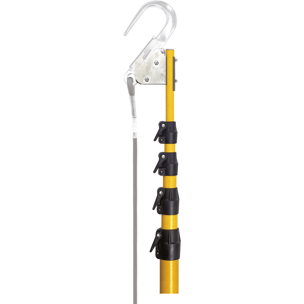 Telescopic pole with a maximum length of 10 m that is equipped with hooking supports for vertical lifelines.