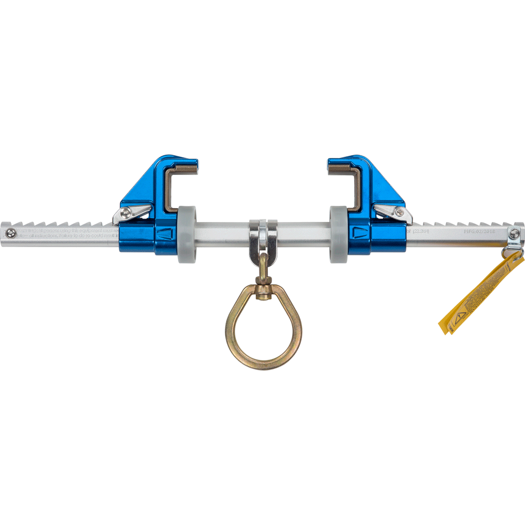 Designed for creating easy and safe connecting point by skidding through joists. Lightweight due to Aluminium housing. Adjustable joist holders allow it to attach on 88-355 mm wide profiles. Easy to adjust and install. Swivel anchor D ring.