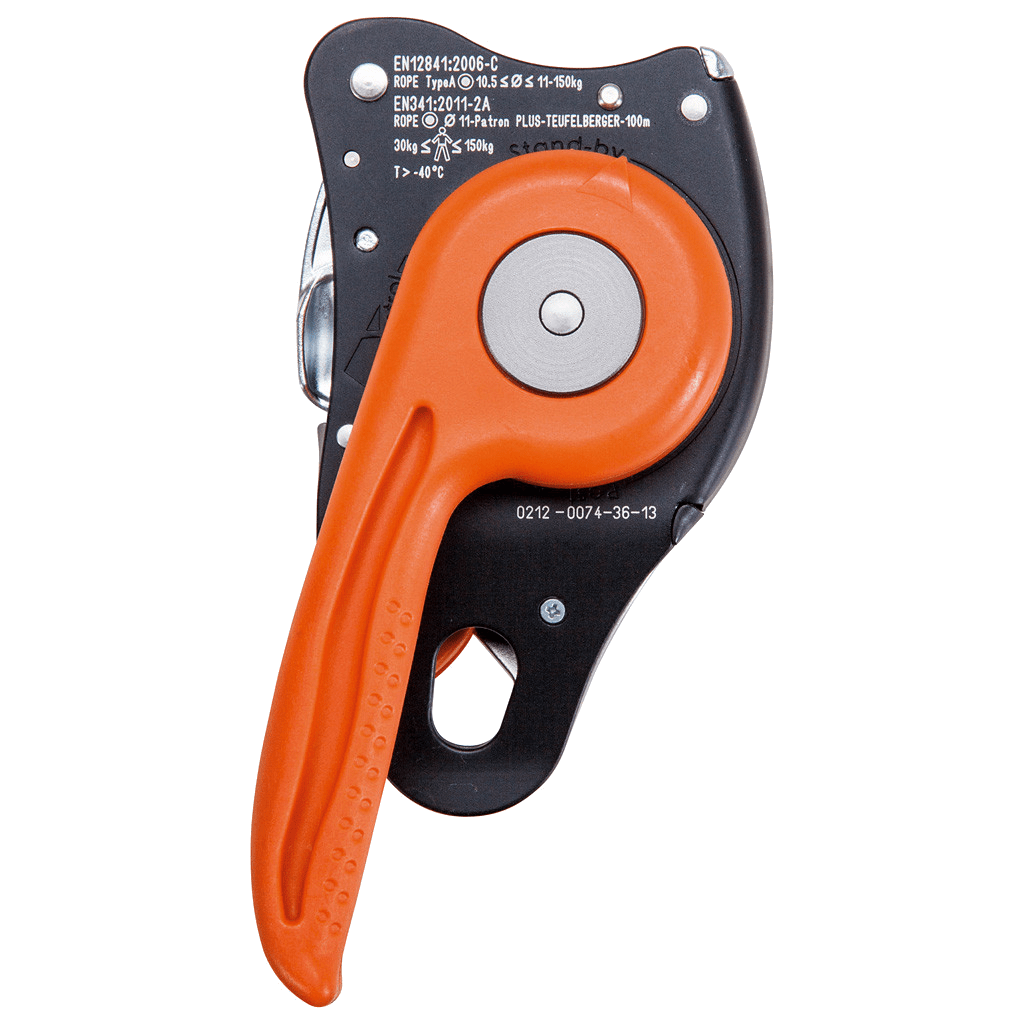 • Rescue descender certified to EN 341:2011-2A, work load limit 150 kg with a maximum descent height of 100 m, only to be used with the PATRON PLUS 11 WITH END LOOPS rope – Ø 11 mm