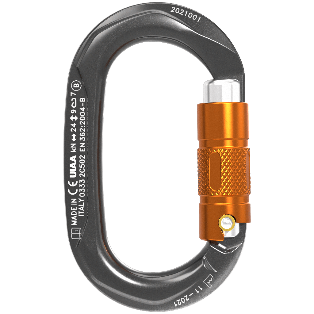 Hot-forged light-alloy oval carabiner with reduced dimensions and triplex gate. Ideal for rope access work, work at height and rescue operations, in particular where space for manoeuvring is limited.