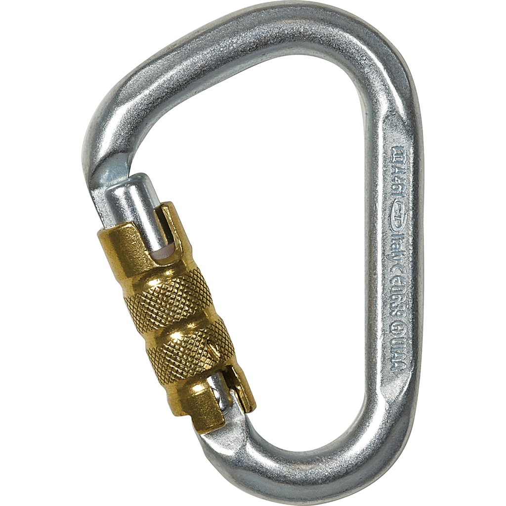 Zinc plated steel carabiner with triplex twist-lock gate, ideal for lowering, working at height, hauling and rescue maneuvers.